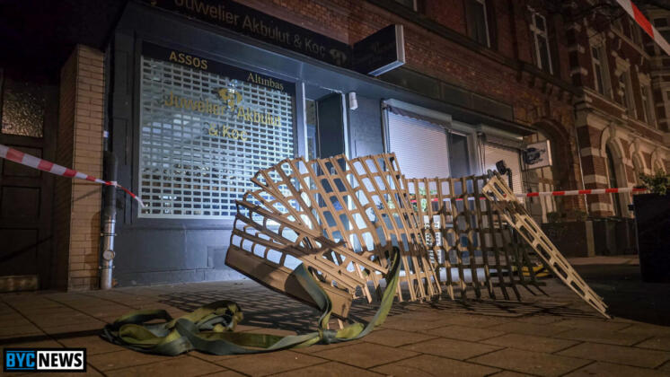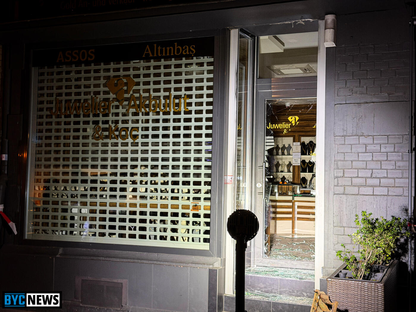 Die Nacht zum Mittwoch verwandelte sich in der Mainzer Neustadt in ein Szenario wie aus einem Kriminalfilm. Gegen 3:00 Uhr riss der schrille Ton einer Alarmanlage die Anwohner der Boppstraße aus dem Schlaf. Die Täter gingen dabei mit purer Gewalt vor: Zuerst manipulierten sie den massiven Metallrollladen eines Juweliergeschäfts, rissen den eisernen Vorhang mit einem Abschleppseil aus der Verankerung. Anschließend zertrümmerten sie die gläserne Eingangstür mit einem schweren Metallgegenstand, um in Rekordzeit an die kostbare Beute im inneren des Gold- und Schmuckhandels zu gelangen.