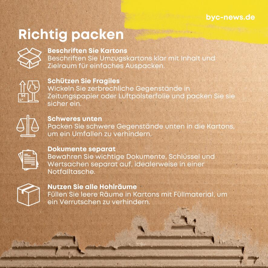 Doch wie kann man Umzugskartons effizient und sicher packen? Die folgenden Tipps können Ihnen helfen.