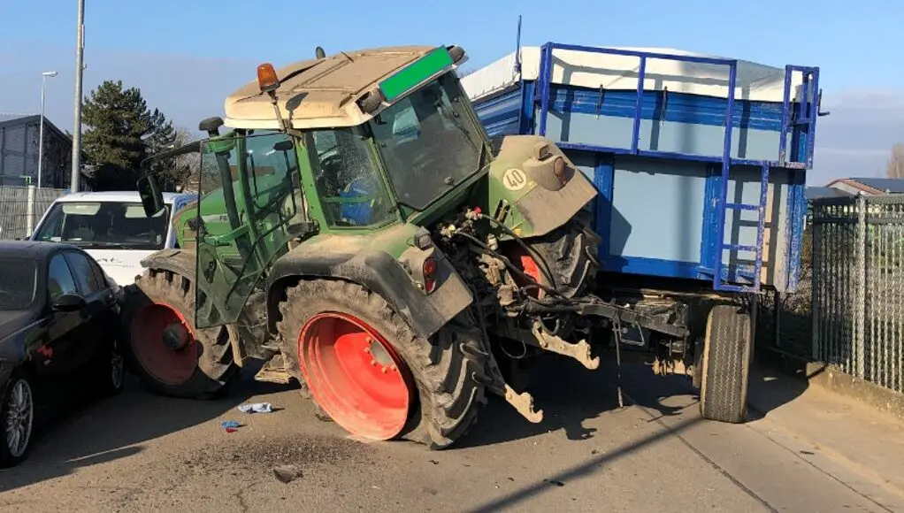 Am Montag (12.12.2022) kam es gegen 12:10 Uhr zu einem Unfall mit hohen Sachschaden bei Dannstadt-Schauernheim. Wie die Polizei Ludwigshafen mitteilt, fuhr ein 20-jähriger Traktorfahrer mit Anhänger die Riedstraße in Richtung Am Bocke.