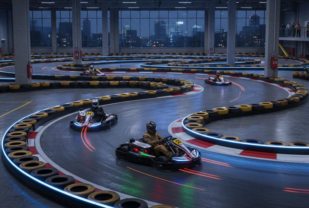 High-Tech-Kartbahn: Ein modernes Nutzungskonzept mit aufwendiger Architektur.