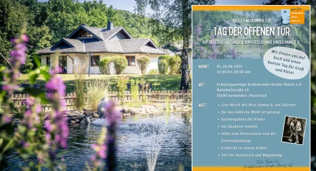 Am Dienstag, den 26. August 2025, lädt der Elternverein die Nachbarschaft, Unterstützerinnen und Unterstützer sowie alle Interessierten herzlich zum Tag der offenen Tür in die Erholungsanlage nach Gemünden ein. Von 15:00 bis 20:00 Uhr erwartet die Gäste ein abwechslungsreiches Programm mit Livemusik mit Nico Gomez und Jan Stürmer, Spielangebote und ein Zauberer für Kinder sowie kulinarischen Angeboten.