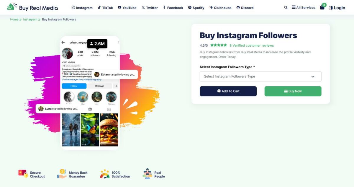Eine äußerst zuverlässige Website, um Follower für Instagram zu kaufen, ist Buy Real Media. Jahrelange Erfahrung und ein zuverlässiger Service zeichnen diesen Anbieter aus.