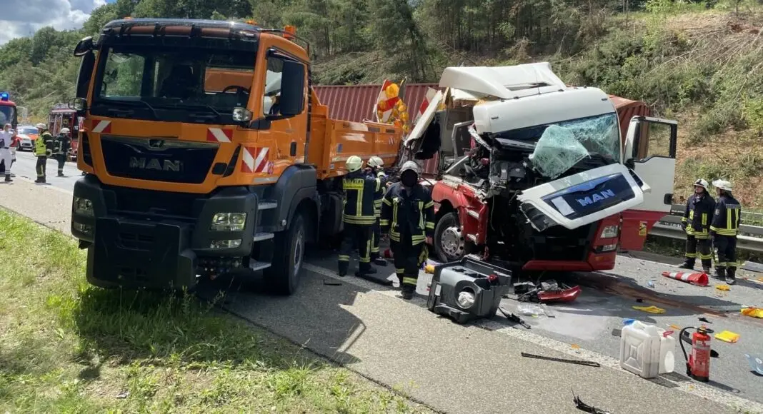 Trotz erheblicher Deformation des Führerhauses des LKW des Unfallverursachers blieb dieser fast unverletzt und wurde lediglich vorsorglich ins Krankenhaus nach Kaiserslautern verbracht. Da sich beide LKW durch den Aufprall ineinander verkeilt hatten und quer zur Fahrbahn standen, war ein Passieren der Unfallstelle durch andere Verkehrsteilnehmer nicht mehr möglich. Hinzukam, dass der Verursacher-LKW einen großen Frachtcontainer geladen hatte, der zum großen Teil vom Anhänger rutschte und nun auf der Mittelschutzplanke lag. Dieser drohte sogar in den Gegenverkehr zu fallen, weshalb er durch die anwesenden Kräfte der Feuerwehr gesichert wurde.