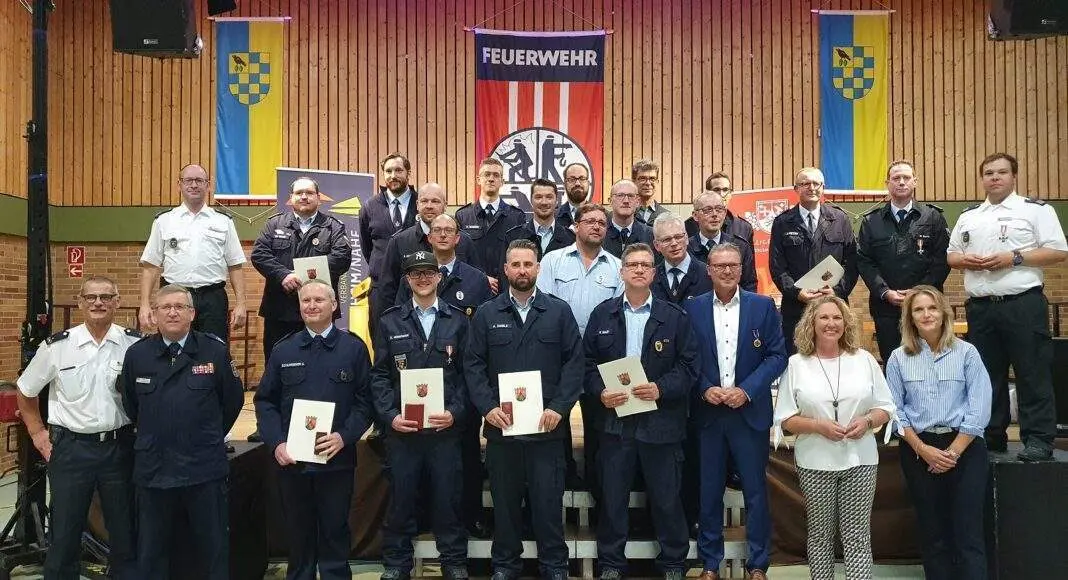 Gemeinsam mit der Landrätin und den beiden stellvertretenden Wehrleitern nahm Bürgermeister Markus Lüttger eine Verpflichtung sowie zahlreiche Ehrungen vor, mit denen die Aktiven für ihr Engagement ausgezeichnet wurden. Mit einem besonderen Dank des Bürgermeisters wurde Dieter Kaul aus Burgsponheim nach 35 Jahren auf eigenen Wunsch aus dem aktiven Feuerwehrdienst entpflichtet.