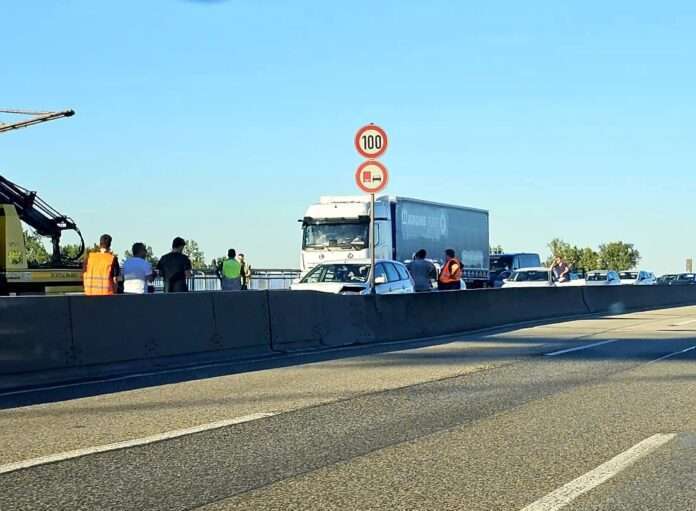 Später wurde die Absicherung von der Autobahnmeisterei übernommen. Kurz nach 17:00 Uhr kam es im Stau auf der Weisenauer Brücke zu einem Auffahrunfall, an dem vier Fahrzeuge beteiligt waren. Glücklicherweise gab es keine Verletzten, aber zwei der Fahrzeuge waren nicht mehr fahrbereit und blockierten zwei der drei Fahrstreifen. Dadurch erstreckte sich der Stau bis weit in den hessischen Bereich.