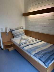Die Zimmer im BFW sind möbliert und mit eigenem Duschbad, Bett, Schrank, Schreibtisch und einem kleinen Kühlschrank ausgestattet. Sozialräume und die Küche können gemeinsam genutzt werden, es gibt darüber hinaus auch die Möglichkeit in der Mensa des BFW zu speisen – auch am Wochenende.