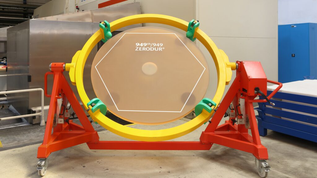 Sein Hauptspiegel mit einem Durchmesser von 39 Metern ist zu groß, um ihn aus einem einzigen Stück herzustellen. Deshalb besteht er aus 798 sechseckigen Segmenten aus ZERODUR® Glaskeramik von SCHOTT, die jeweils etwa 5 cm dick sind und einen Durchmesser von 1,5 m haben. Nach der Produktion in Mainz haben die M1-Spiegelträger eine lange Reise zum ELT-Standort in Chile vor sich. Nach dem Polieren durch die französische Firma Safran Reosc werden die Segmente über 10.000 km zur ESO-Anlage am Paranal-Observatorium in der Atacama-Wüste transportiert, wo sie mit einer reflektierenden Silberschicht beschichtet werden.