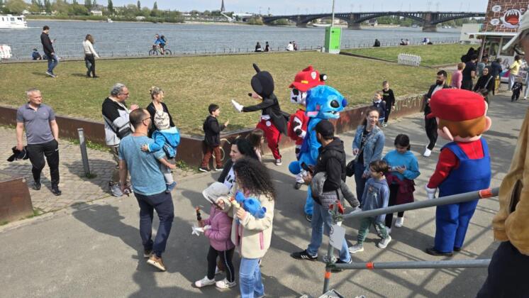 Am vergangenen Mittwoch (16. April 2025) lockte der Familientag auf dem Mainzer Rhein-Frühling zahlreiche große und kleine Besucher an das Rheinufer. Besonders beliebt waren die Comic-Helden Micky, Marshall, Stitch und Super Mario, die von 13:45 Uhr bis 16:15 Uhr für Fotos und kleine Späße zur Verfügung standen. Über 500 Erinnerungsfotos wurden gemeinsam mit den beliebten Figuren aufgenommen.