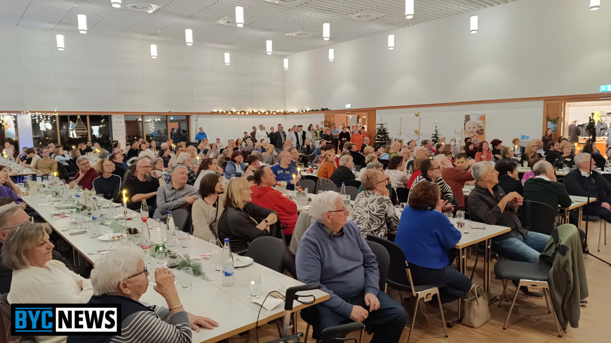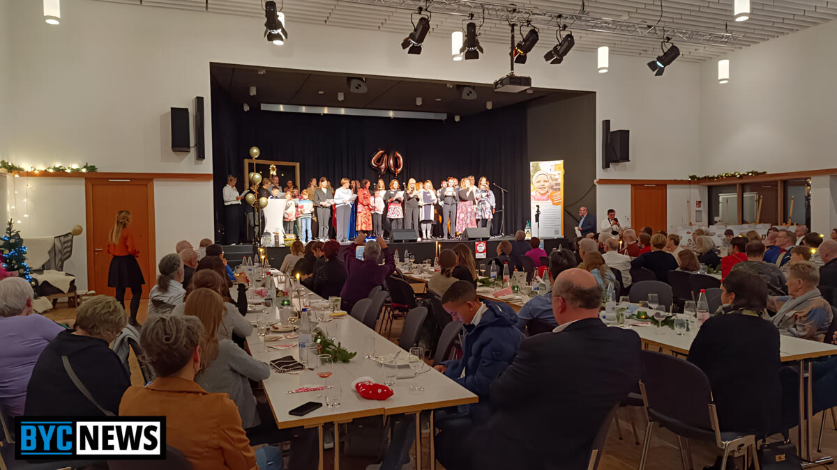 Das Bürgerhaus Hechtsheim verwandelte sich an diesem Abend in einen Ort der Begegnung und Gemeinschaft. Im Foyer lockte ein stimmungsvoller Weihnachtsmarkt und kreative Angebote für Groß und Klein. Im festlich dekorierten Rheinhessensaal erwartete die Gäste ein abwechslungsreiches Programm, das musikalische Highlights, emotionale Momente und besondere Überraschungen bot. Die Sängerin „Laura singt“ sorgte gleich zu Beginn für eine feierliche Stimmung.