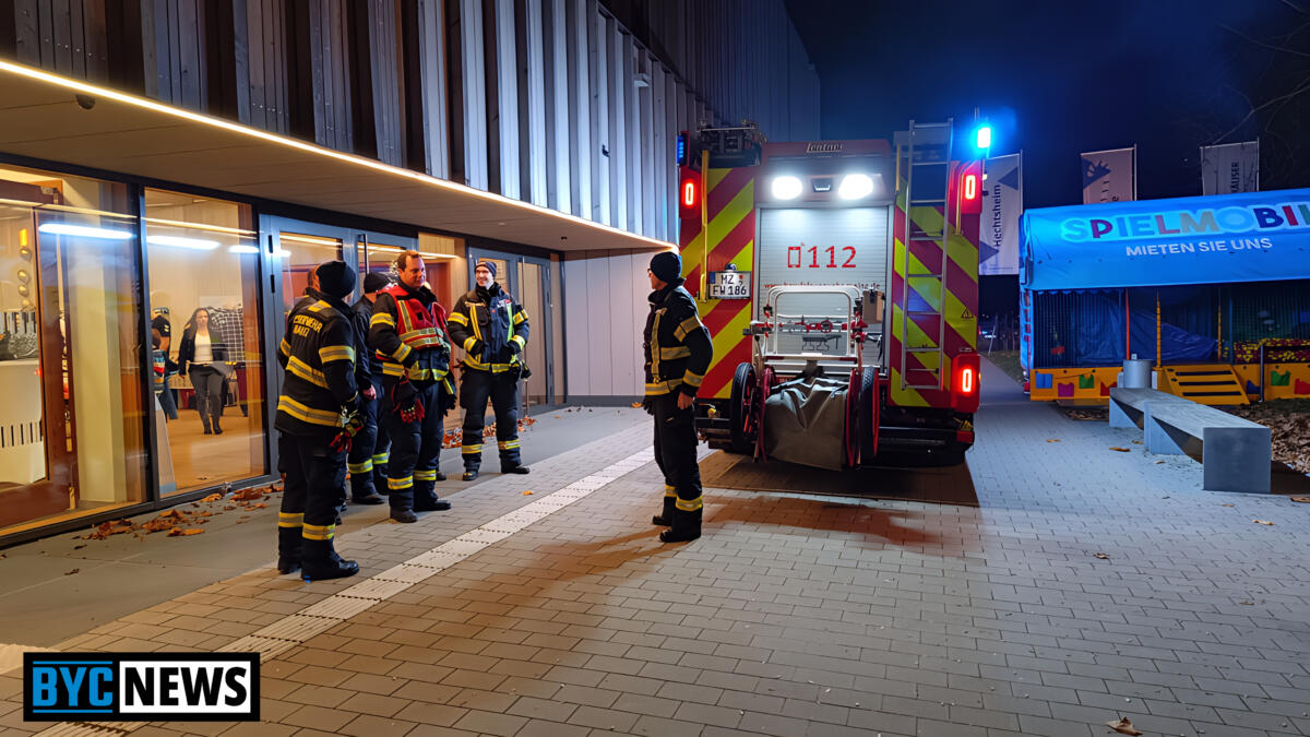 Gegen kurz vor 20 Uhr, während die Feier im Saal in vollem Gange war, fuhr die Feuerwehr mit drei Einsatzfahrzeugen vor. Eines der Fahrzeug wurde direkt vor dem Bürgerhaus abgestellt und das Blaulicht eingeschaltet.