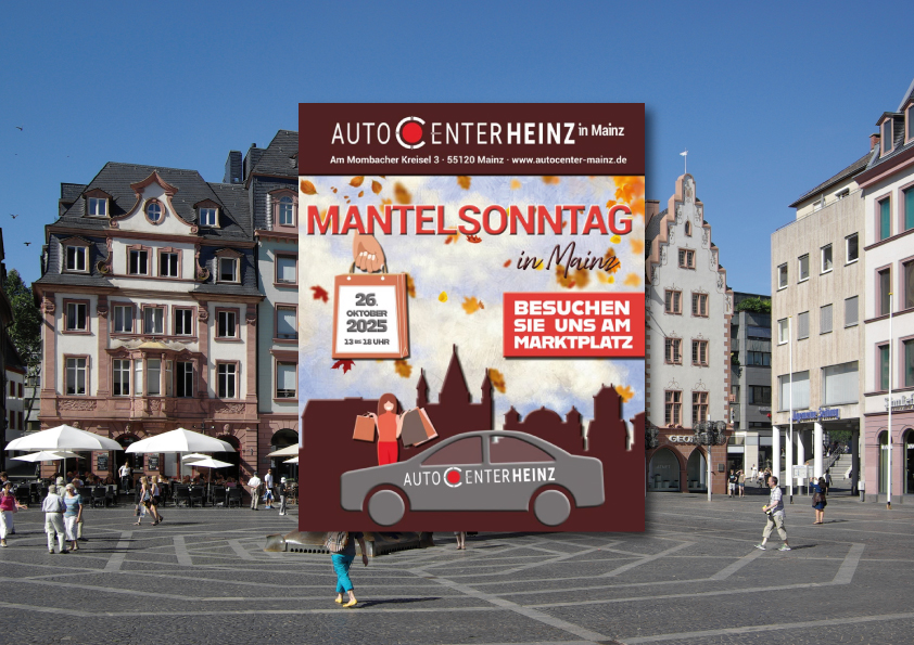 Ein Besuch beim Heinz AutoCenter auf dem Mainzer Marktplatz eignet sich perfekt, um ihn am verkaufsoffenen Sonntag mit einem Bummel durch die Innenstadt zu verbinden. Am 26. Oktober 2025 präsentiert das Mainzer Heinz AutoCenter von 13:00 bis 18:00 Uhr die Marken Ford, Volvo, Kia, Hyundai und Lynk & Co mitten in der Mainzer Innenstadt.