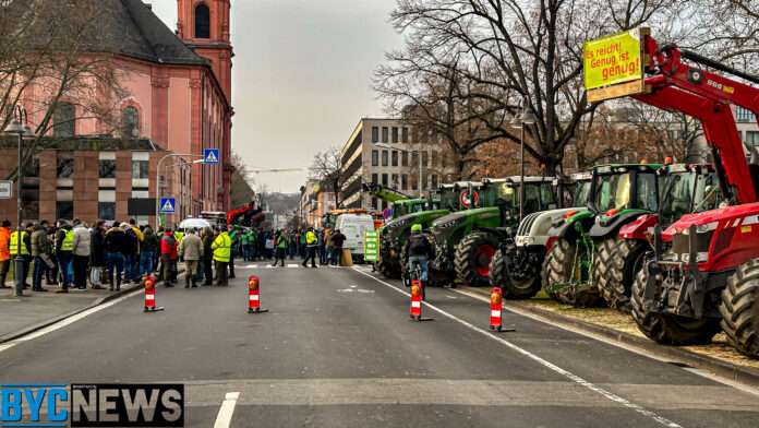 Gemäß Informationen, die BYC-News vorliegen, plant der Verein „LSV Deutschland e.V. – Landwirtschaft verbindet Deutschland“ während des Empfangs eine umfangreiche Aktion in Mainz. Über 100 Traktoren und einige Lastwagen sollen sich bei den Agrartagen in Hechtsheim versammeln und dann gemeinsam zur Rheinachse fahren – und das mitten im Berufsverkehr. Voraussichtlich ab 14:30 Uhr bis in die Abendstunden werden rund 150 Traktoren von Hechtsheim aus starten und sich ihren Weg durch die Rheinhessen Straße, Pariser Straße, Aliceplatz und Kaiserstraße bahnen. Der Endpunkt dieser Traktoren-Demonstration befindet sich im Bereich Adenauer-Ufer, wo die Fahrzeuge parken werden. Mit einer deutlich geringeren Fahrzeuganzahl wird der Aufzug über die Bauhofstraße – Flachsmarktstraße – Schusterstraße – Quintinstraße – Rheinstraße fortgesetzt. An der Rheinpromenande wird dann eine Kundgebung abgehalten.