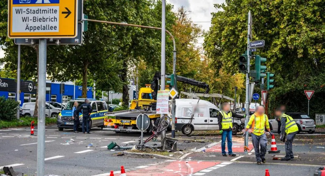 Nachrichten Wiesbaden: Am Montag, den 29. September 2025, ereignete sich in Wiesbaden ein schwerer Verkehrsunfall. Gegen 12:50 Uhr wollte ein 47-jähriger Fahrer eines weißen Opel Kastenwagens von der Rheingaustraße nach rechts in die Äppelallee abbiegen. Dabei stieß er mit einer 50-jährigen Fahrradfahrerin zusammen.