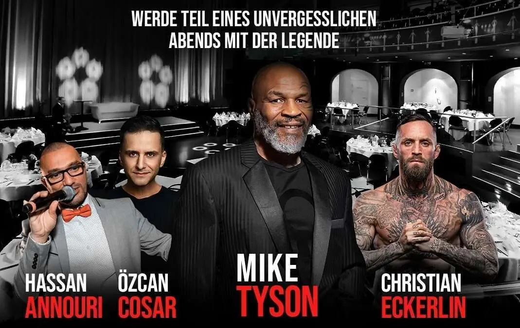 Der Ausnahmeathlet wird ein exklusives Meet & Greet im Capitol von Offenbach abhalten. Das Event verspricht nicht nur Tyson-Fans, sondern auch Box-Enthusiasten ein unvergessliches Erlebnis zu bieten. Neben einem exquisiten Galadinner mit gesetztem Essen und Softdrinks wird der Abend von Comedian Özcan Cosar moderiert. Zusätzlich werden weitere VIP-Gäste erwartet, darunter der MMA-Star Christian Eckerlin und Hassan Annouri, die den roten Teppich mit Tyson teilen werden.