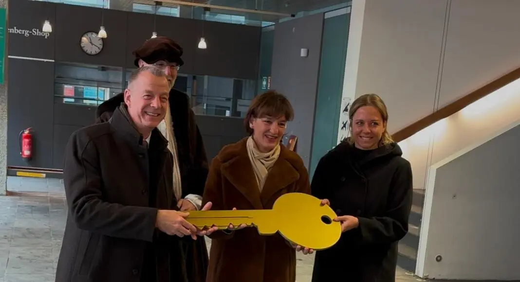 Nachrichten Mainz: Mit einer feierlichen Geste überreichte Bau- und Kulturdezernentin Marianne Grosse am Mittwoch, 15. Januar 2025, im Namen des Gutenberg-Museums symbolisch den Schlüssel für den Schell-Bau an die Gebäudewirtschaft Mainz, die den Neubau errichten wird. Mit dieser symbolischen Schlüsselübergabe beginnt offiziell der Rückbau des alten Museumsgebäudes, um Platz für den Neubau des Weltmuseums der Druckkunst zu schaffen. Dem Neubau ging ein begleitender Prozess mit der wichtigen Aufgabe einer kontinuierlichen Beteiligung der zuständigen Gremien und der Öffentlichkeit voraus.
