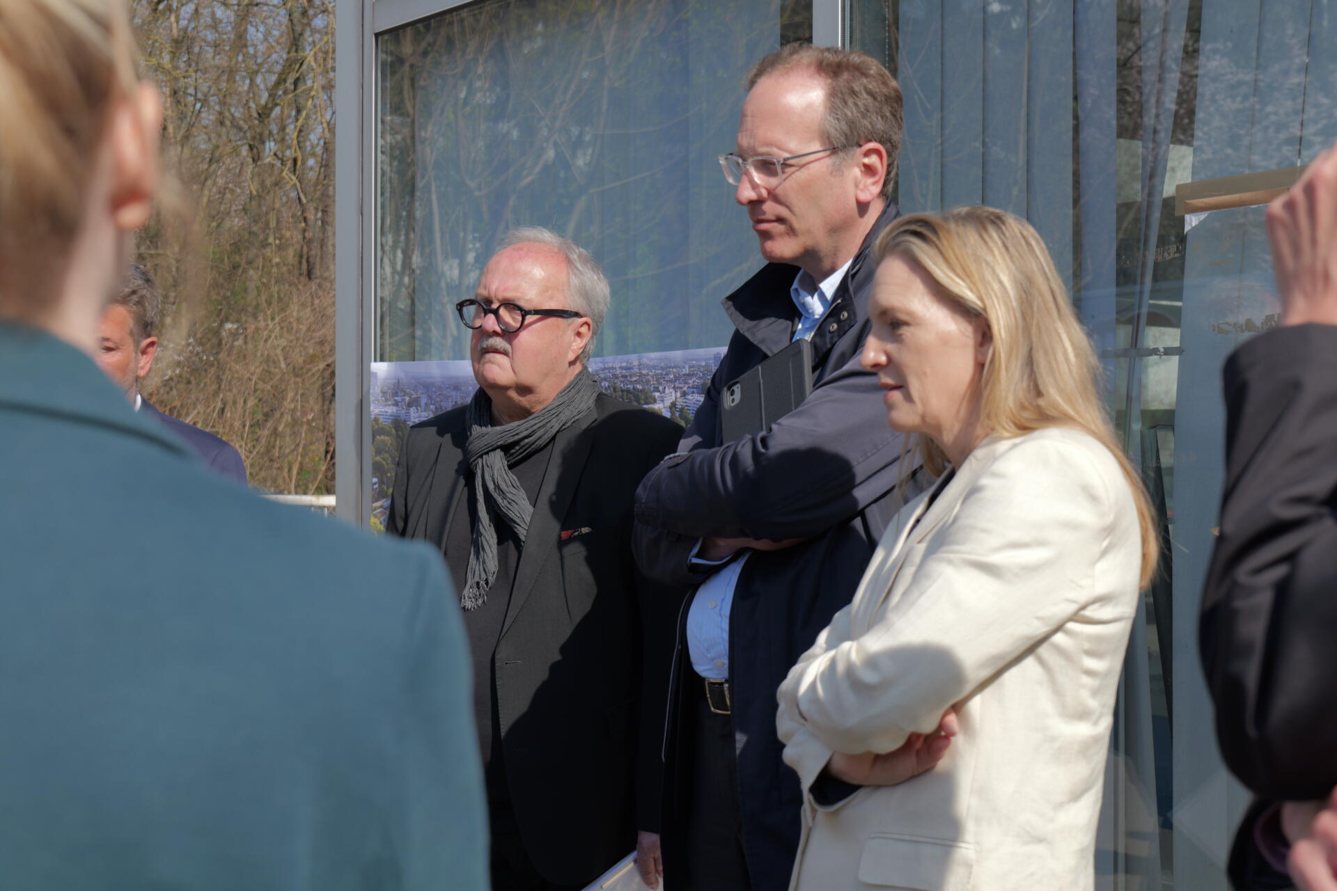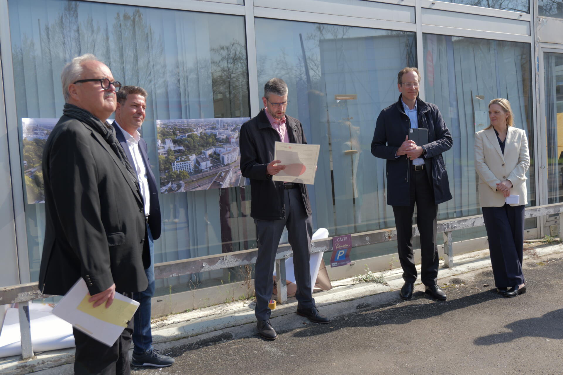 Christin Sauer, Ortsvorsteherin von Hartenberg-Münchfeld betont: „Für Hartenberg-Münchfeld ist es toll, wir gewinnen weiteren Wohnraum. Die Nachfrage ist nach wie vor wirklich sehr groß. Ich freue mich besonders, dass das Projekt auf einer bereits versiegelten Fläche umgesetzt wird, das heißt hier stirbt kein Grashalm. Hier gibt es bisher keine Bäume, dafür kommen zwei dazu. Insofern ist das auch ein Gewinn für das Mikroklima.“