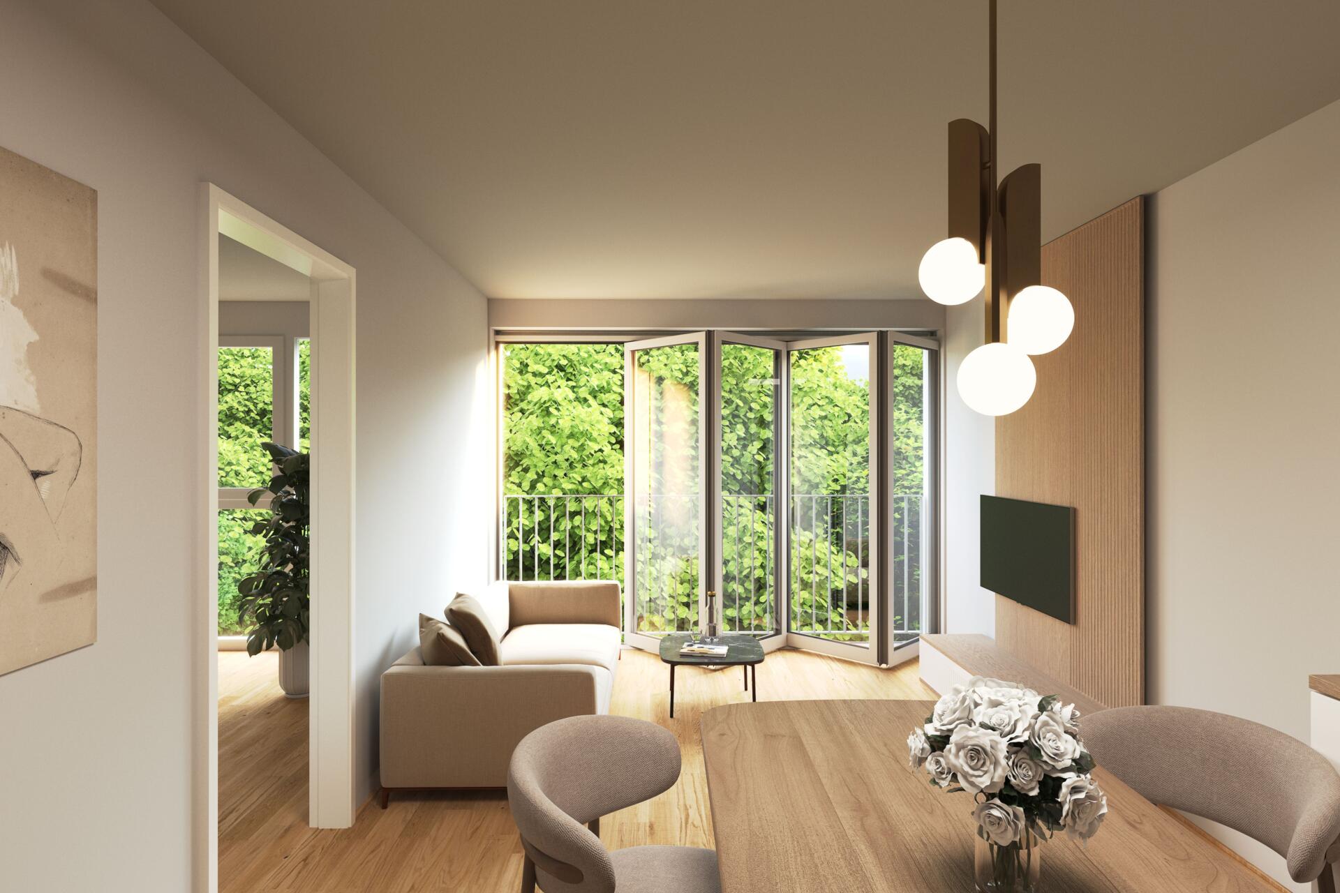 Auf dem Areal entsteht ein urbanes Ensemble, das insgesamt rund 66 Wohnungen sowie etwa 514 Quadratmeter Büro- und Praxisflächen umfasst. Das Wohnungsangebot reicht von kompakten Ein-Zimmer-Einheiten bis hin zu großzügigen Vier-Zimmer-Wohnungen mit Flächen zwischen 31 und 91 Quadratmetern. Der Schwerpunkt liegt dabei auf modernen Zwei- und Drei-Zimmer-Wohnungen.