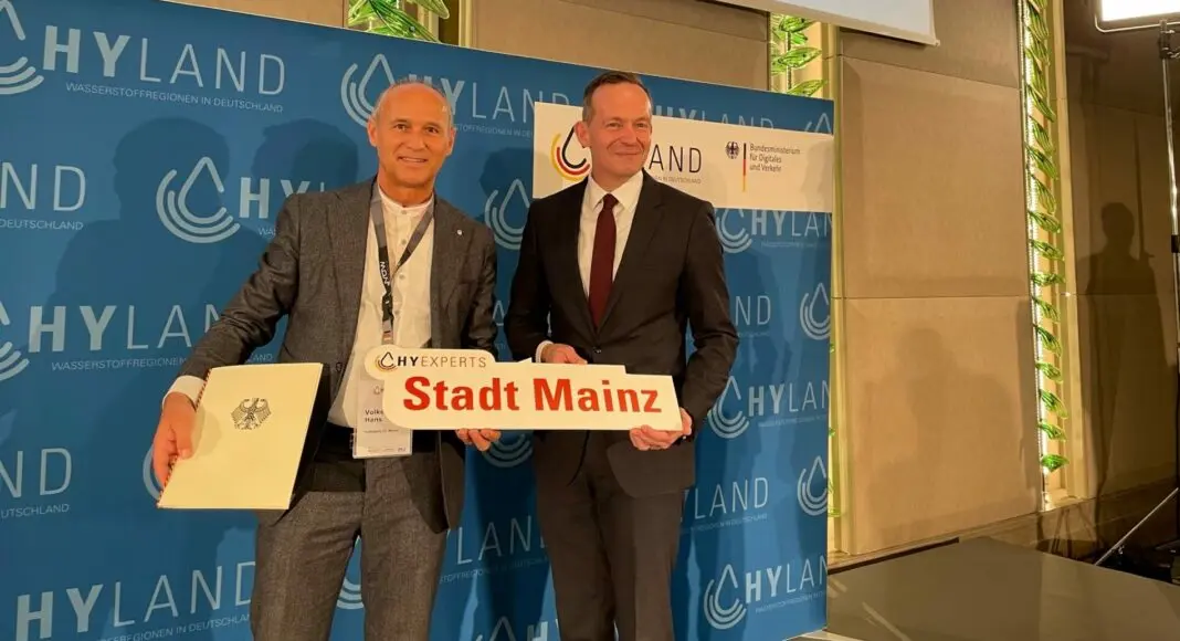 Das Bundesministerium für Verkehr und digitale Infrastruktur (BMVI) hat insgesamt 30 Regionen in ganz Deutschland als HyExpert Regionen (15 Regionen) bzw. als HyStarter Regionen (15 Regionen) ausgezeichnet. Gestern, am 12. Mai erhielt Volker Hans, Dezernent für Fördermittelmanagement der Stadt Mainz den Förderbescheid über 400.000 Euro als HyExpert Region von Bundesverkehrsminister Dr. Volker Wissing.