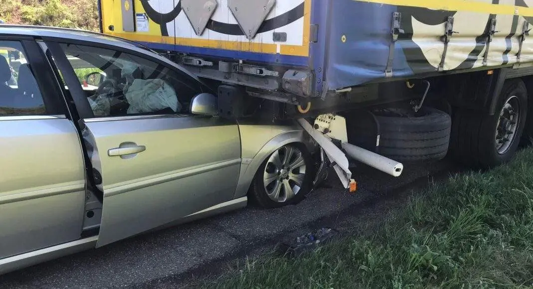 Opel kracht unter Lastwagen auf der Autobahn A63