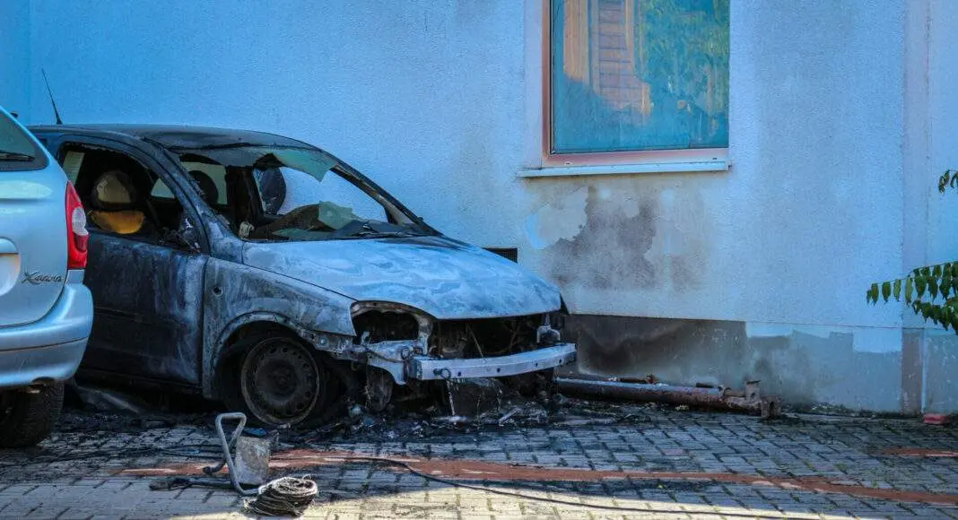 Die Einsatzkräfte der Berufsfeuerwehr Mainz wurden gegen 15:48 Uhr in die Heinrich-Freber-Straße in Mainz-Mombach gerufen. Dort war es aus noch aktuell noch ungeklärter Ursache zu einem Fahrzeugbrand gekommen. Bei Eintreffen der Feuerwehr, stand der Opel Corsa in Vollbrand, die Flammen schlugen aus dem Motor, sowie dem Innenraum Meterweit in den Himmel. Die 14 Kräfte der Feuerwehr starteten nach Eintreffen umgehend mit dem Löschangriff, welcher auch innerhalb von wenigen Minuten Erfolg brachte. Da das Fahrzeug unweit eines Wohnhauses stand, wurde das Wohnhaus ebenfalls in Mitleidenschaft gezogen. Ein Fenster des Hauses hielt der Hitze nicht stand und platzte, zudem wurden zwei weitere Fahrzeuge, welche unweit des brennenden Opel Corsa standen, beschädigt. Nachdem die Flammen durch die Berufsfeuerwehr Mainz gelöscht wurden, fanden Nachlöscharbeiten sowie Nachkontrollen am Wohnhaus statt. Ein Trupp kontrollierte mit der Drehleiter das Dach des Einfamilienhauses, ein anderer Trupp kontrollierte fußläufig den Keller. Glücklicherweise breitete sich das Feuer nicht weiter in das Gebäude aus.