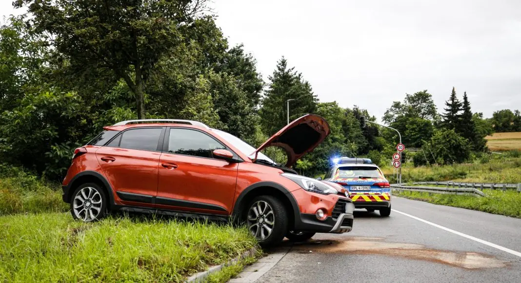 Ein 23-Jähriger fuhr vom Mainzer Lerchenberg kommend in Richtung Mainz-Marienborn. Im Straßenverlauf des Marienborner Bergweg verlor er vermutlich durch überhöhte Geschwindigkeit auf regennasser Fahrbahn die Kontrolle über seinen orangen Hyundai i20. Das Fahrzeug drehte sich um die eigene Achse, überfuhr ein Verkehrsschild und kam im Grünstreifen zum Stehen. Durch die Wucht mit dem der Hyundai gegen den Bordstein krachte, riss das hintere linke Rad des Kleinwagens ab. Die Feuerwehr Mainz stellte den Brandschutz sicher, klemmte die Fahrzeugbatterie ab und nahm die auslaufenden Betriebsstoffe auf.