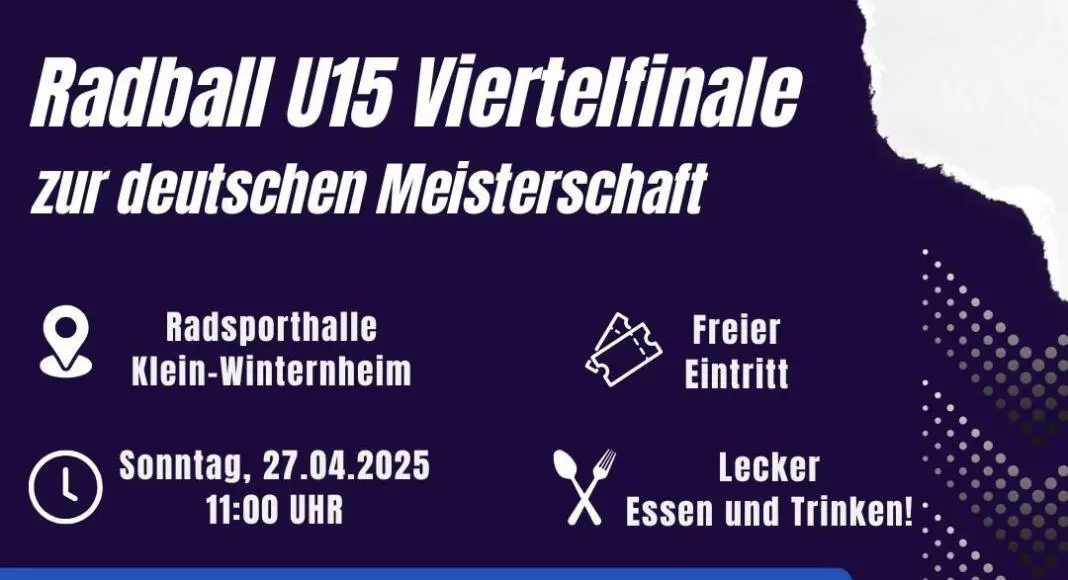 Radball – Hochspannung, Teamgeist und packende Duelle auf zwei Rädern erwarten die Besucher am kommenden Sonntag (27. April 2025) in der Radsporthalle Klein-Winternheim. Ab 11:00 Uhr findet dort das Viertelfinale der Deutschen Meisterschaft im Radball der Altersklasse U15 statt – und das mit prominenter Beteiligung: Das Team des RSV Klein-Winternheim, bestehend aus Simon Kiebler und Jakob Schreiber, tritt als amtierender Rheinland-Pfalz-Meister an.