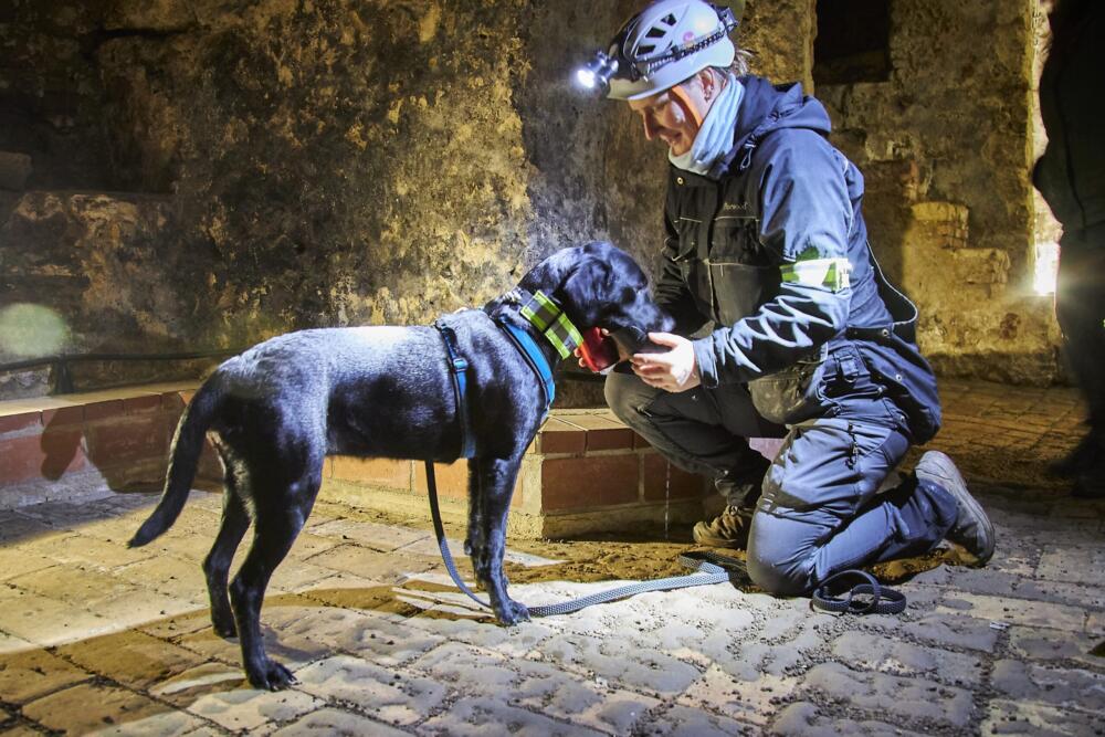 Rettungshunde trainieren im Kellerlabyrinth in Oppenheim