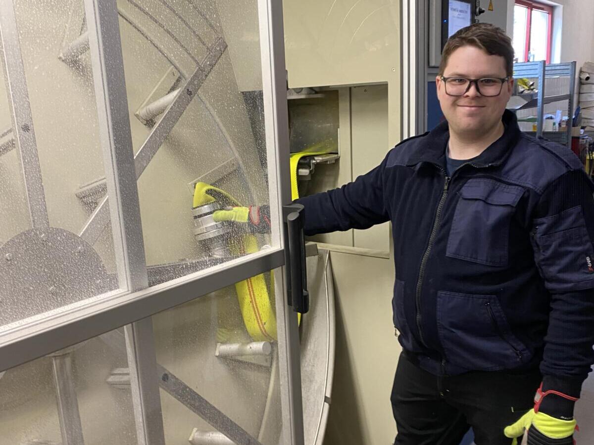 Mittlerweile beherrscht er die Schlauchwaschanlage so routiniert, dass er die Arbeit selbstständig und eigenverantwortlich durchführen kann. Seine Tätigkeit entlastet die Feuerwehrleute erheblich und ist ein wertvoller Beitrag zur Einsatzbereitschaft der Feuerwehr.