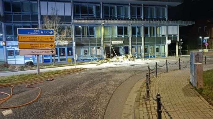 In der Nacht von Montag auf Dienstag (22. Februar 2023) wurde in Taunusstein im Rheingau-Taunus-Kreis ein Geldautomat in einer Bankfiliale im Rathausgebäude gesprengt. Mindestens zwei Täter sind auf der Flucht und konnten bisher nicht gefasst werden.