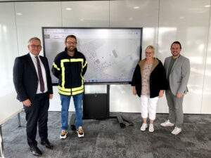 Die Technik erfasst den Standort, sie kann den Puls, aber auch die Körper- und Umgebungstemperatur messen und sie gibt ein Signal, wenn ein Kamerad bewegungslos ist. „Die Smart PSA GmbH steht für Innovation und bereichert mit ihrem Angebot unseren Landkreis Mainz-Bingen“, so Landrätin Dorothea Schäfer. Gemeinsam mit Oliver Dyllick von der Wirtschaftsförderung des Landkreises tauschte sich die Landrätin bei der Firma mit dem Geschäftsführer Denis Weber sowie Heiko Kruse über die Entwicklung und die Pläne für die Zukunft aus. „Um die wirtschaftliche Entwicklung zu fördern, ist ein enger Draht zu den Unternehmen wichtig“, so die Landrätin.