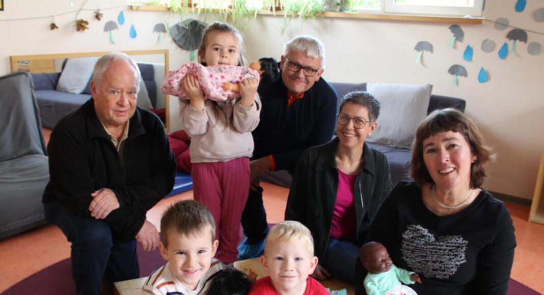 „Die Babypuppen sind toll gearbeitet, mit vielen schönen Details wie zum Beispiel den Neugeborenen-Bändchen am Handgelenk“, bedankt sich Kitaleiterin Sabine Gunst-Bühler bei Günter Kleinwächter und Matthias Wild vom Reparaturcafé für die Spende. Der Kitaleiterin war bei der Auswahl nicht nur die hochwertige Verarbeitung und Ausstattung wichtig, sondern auch eine gewisse Diversität. „Ein asiatisches Kind hatte sich beschwert, dass es bei uns gar keine Kinder mit seinem Aussehen gibt“, erzählt Gunst-Bühler. So wurden von dem Spendengeld zwei asiatische und eine dunkelhäutige Puppe angeschafft. Eine Babypuppe ist für die Krippe gedacht, die übrigen drei ergänzen das Puppenarsenal im Rollenspielraum.