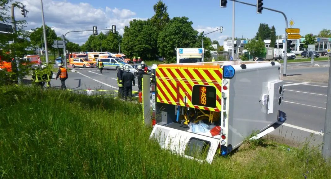 Der Rettungswagen wurde durch die Wucht des Aufpralls zu 90 Grad gedreht und fiel anschließend auf die rechte Fahrzeugseite. Der PKW selbst wurde ebenfalls schwer beschädigt. Die Auto-Fahrerin, sowie beide Rettungsdienstmitarbeiter wurden bei dem Unfall verletzt und zur Behandlung in die Krankenhäuser nach Groß-Gerau und Rüsselsheim gebracht.