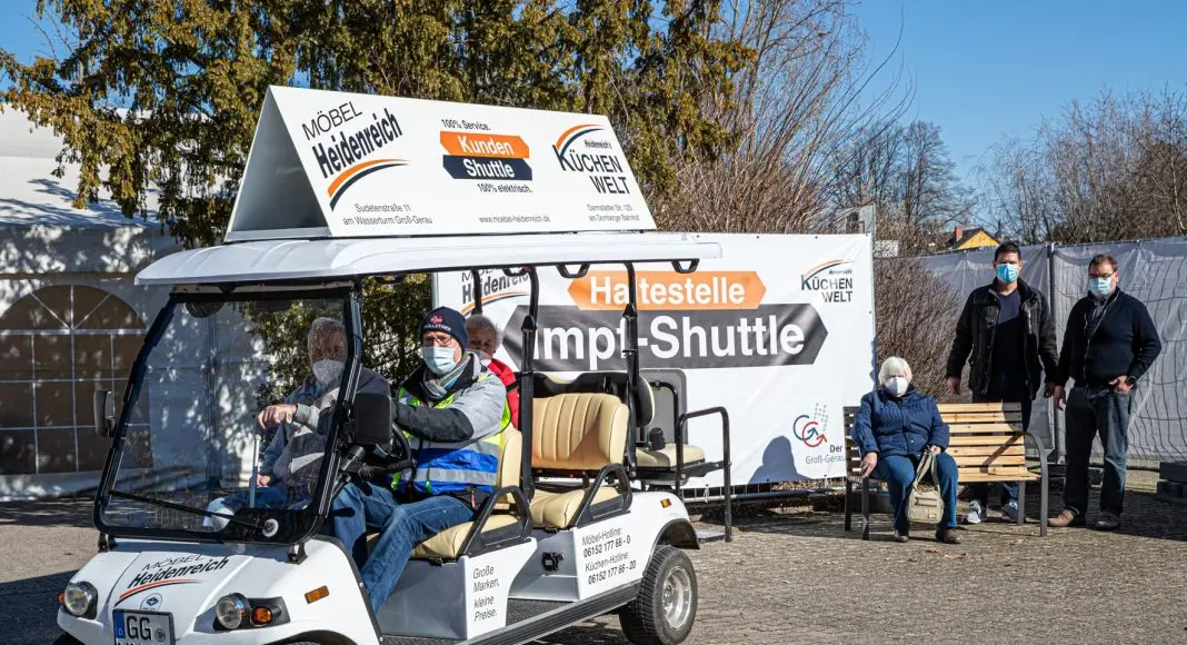 Nachrichten Groß-Gerau | Seit Anfang März gibt es einen zusätzlichen Service am Impfzentrum in Groß-Gerau. Menschen, die zu Fuß nicht mehr so mobil sind, können mit einem Shuttle vom Empfangsbereich bis zum eigentlichen Eingang und wieder zurück gefahren werden.