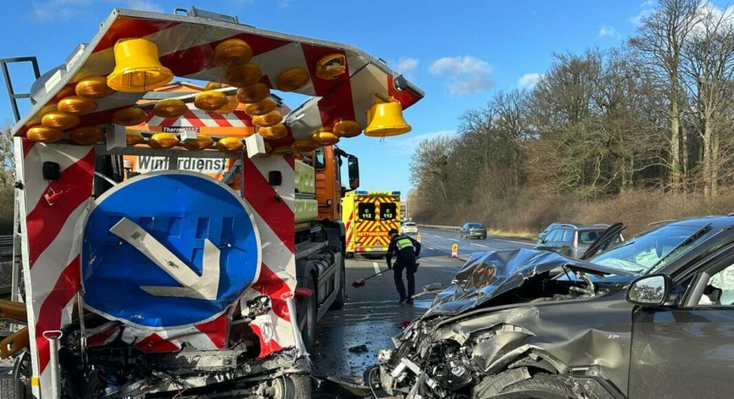 Unfall A3: Am Montagvormittag, 27. Januar 2025, kam es auf der Bundesautobahn 3 in Fahrtrichtung Oberhausen zu einem Verkehrsunfall, bei dem ein BMW SUV auf einen Warnanhänger der Autobahnmeisterei auffuhr. Der Vorfall ereignete sich zwischen dem Autobahnkreuz Ratingen-Breitscheid und der Anschlussstelle Duisburg-Wedau.