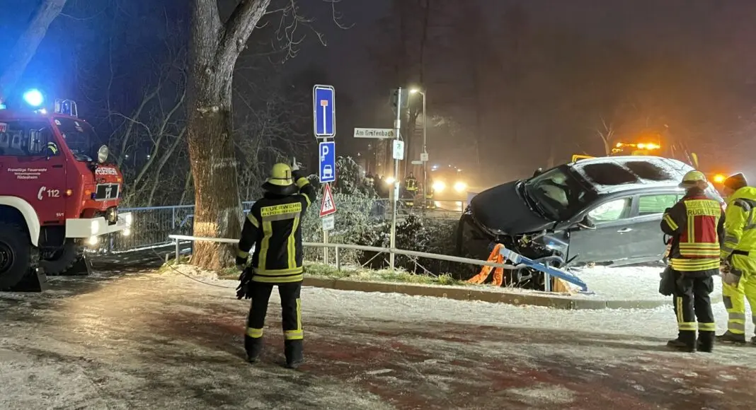Ein spektakulärer Unfall am ereignete sich am Samstagnachmittag (17. Dezember 2022) in Hargesheim: eine Autofahrerin kam im Kurvenbereich des Ortseingangs von der Fahrbahn ab und prallte gegen ein Brückengeländer. Die stabile Stahlkonstruktion verhinderte, dass der SUV in den Gräfenbach stürzte.