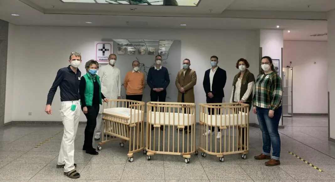 Um die Bindung zwischen Mutter und Kind auch beim Schlafen spürbar zu machen und einen sicheren Rahmen für nach der Geburt zu schaffen, spendet das Netzwerk der Ossig-Stiftung 10 Holzbeistellbetten im Gesamtwert von 4.500 € für den Bad Kreuznacher Nachwuchs auf der Wochenbettstation des Diakonie Krankenhauses in Bad Kreuznach.