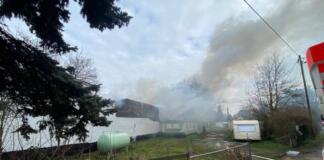 Feuerwehr Wiesbaden bekämpft Großbrand in Mainz-Kastel