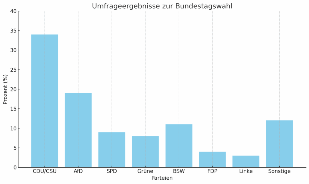 Die einstige Volkspartei SPD bleibt mit 9 % weit hinter den Erwartungen zurück. Dies zeigt, dass die Sozialdemokraten weiterhin Schwierigkeiten haben, ihre Position in der politischen Mitte zu behaupten. Auch die Grünen, die lange Zeit in Umfragen zweistellig lagen, kommen nur auf 8 %. Dies könnte auf die anhaltende Kritik an der Energiepolitik sowie die unklare Haltung in der Migrationspolitik zurückzuführen sein.