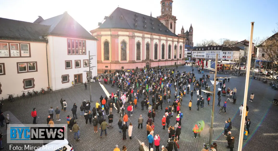 Am Sonntag (27. Februar 2022) versammelten sich rund 300 Menschen um 15:00 Uhr am Marktplatz in Worms. Die Wormser politischen Jugendorganisationen der Grünen, FDP, CDU und der SPD organisierten die Versammlung und setzten damit ein Zeichen der Solidarität mit der Ukraine.