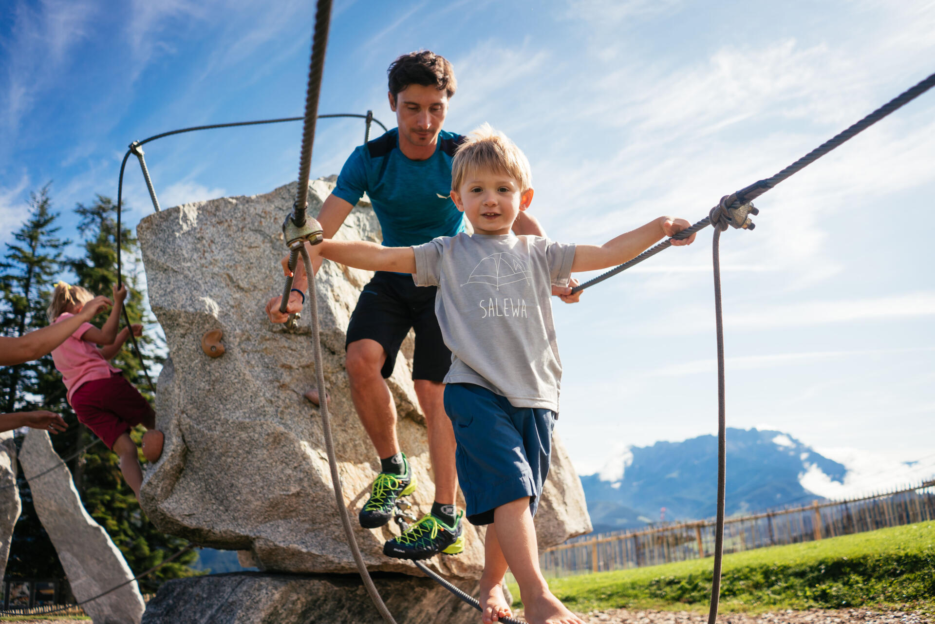 Für Familien, die im Urlaub im Pillerseetal über sich hinauswachsen wollen, bietet die Region spannende Kletterangebote. Beim Klettereinsteigerkurs sammeln Erwachsene und größere Kinder unter professioneller Anleitung erste Erfahrungen am echten Fels – gesichert, begleitet und Schritt für Schritt. Wer es etwas spielerischer mag, besucht den Hochseilgarten direkt am Pillersee. Zwischen den Baumwipfeln sind Mut und Geschicklichkeit gefragt, während man sich von Parcours zu Parcours vorarbeitet. Für diejenigen, die lieber festen Boden unter den Füßen behalten, bietet der Sonnenplatz am See den perfekten Logenplatz, um das Treiben in der Höhe entspannt zu beobachten.