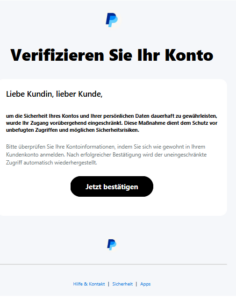 Aktuell sind bundesweit gefälschte E-Mails im Umlauf, die angeblich von PayPal stammen. Die Nachrichten tragen den Betreff: „Ihr PayPal-Konto wurde zur Sicherheit eingeschränkt“ und suggerieren, dass der Zugang zum Konto vorübergehend gesperrt wurde, um die Sicherheit zu gewährleisten.