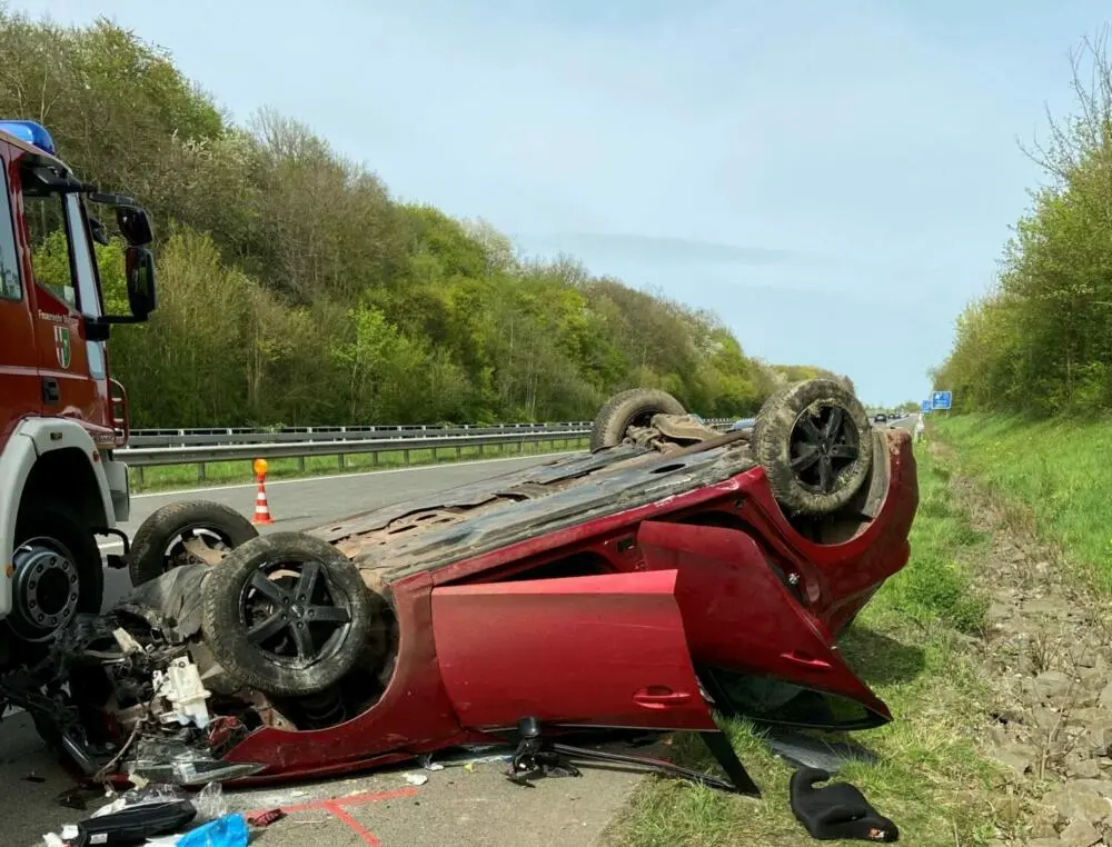 Eine 48-jährige Fahrerin war in Begleitung ihrer beiden Kinder, im Alter von 9 und 10 Jahren, auf dem linken Fahrstreifen unterwegs, als ein Wohnmobil beim Versuch, ein anderes Fahrzeug zu überholen, unerwartet auf ihre Spur wechselte. Um eine Kollision zu vermeiden, lenkte die Frau ihren PKW nach rechts und kam dabei von der Fahrbahn ab. Das Fahrzeug überschlug sich im angrenzenden Böschungsbereich und kam schließlich auf dem Dach liegend auf dem Standstreifen zum Stillstand.