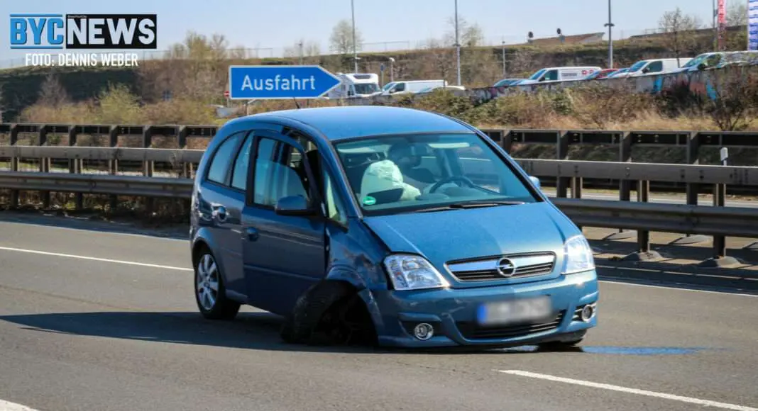 Die Fahrerin eines weißen Toyota Aygo aus Wiesbaden wollte gegen 13:00 Uhr in Höhe der Auffahrt Mainz-Großberg von der rechten Fahrspur auf die mittlere Fahrspur der dort vierspurigen Fahrbahn der Autobahn A60 wechseln. Ein Opel Meriva, besetzt mit zwei Personen aus dem Kreis Groß-Gerau konnte nicht mehr rechtzeitig bremsen und fuhr der Toyota-Fahrerin auf.