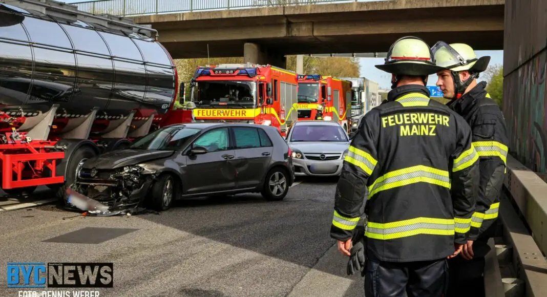 Zu einer Vollsperrung kam es am späten Dienstagnachmittag (12. April 2022) auf der Autobahn A60 zwischen den Anschlussstellen Mainz-Lerchenberg und der Auffahrt zur Bundesstraße B40 kurz nach dem Kreuz Mainz-Süd in Fahrtrichtung Bingen. Grund dafür war ein Verkehrsunfall zwischen zwei PKW und einem LKW. BYC-News war vor Ort.