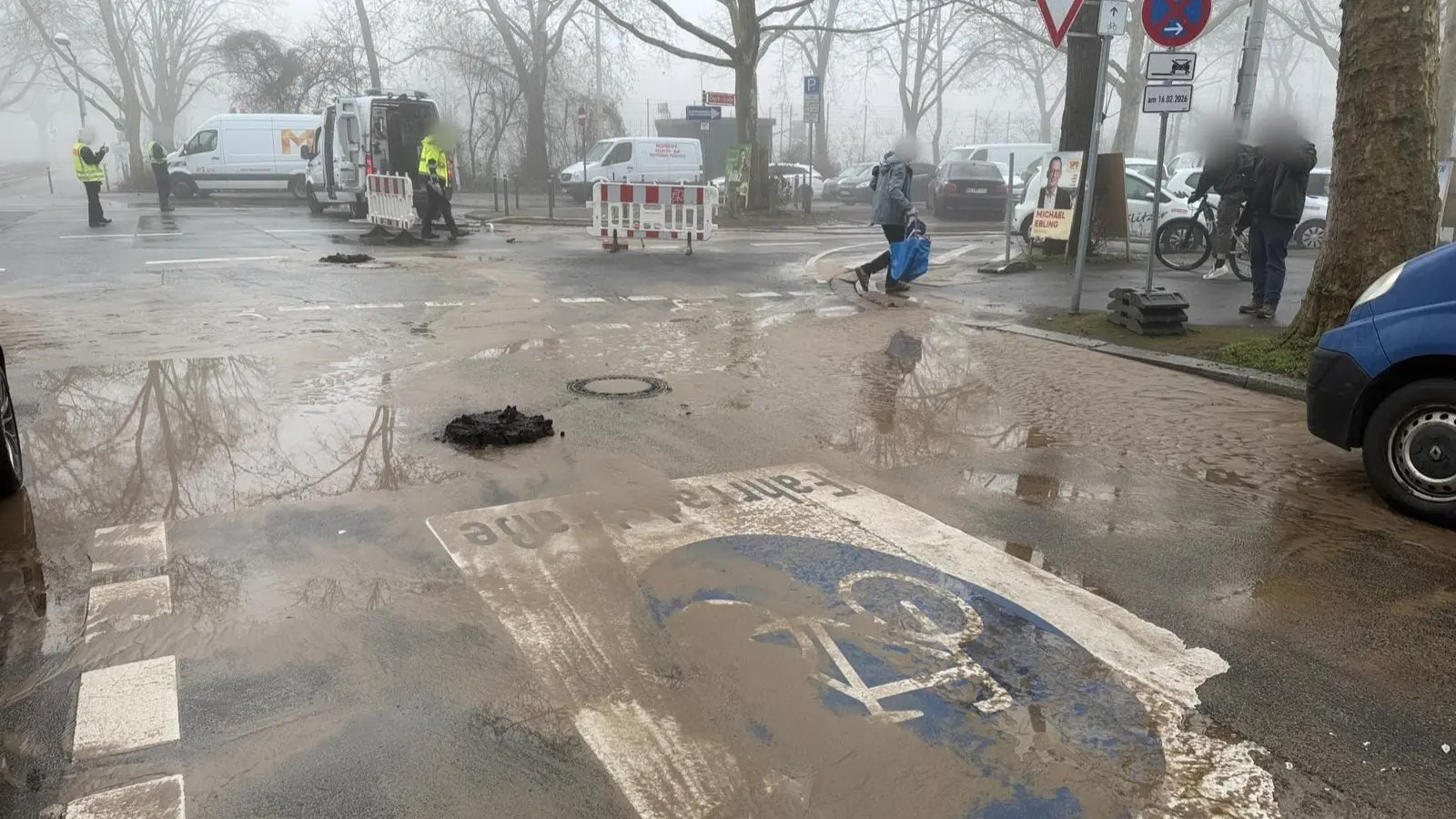 Aktuelle Verkehrslage: Kreuzung nach Wasserrohrbruch in Mainz gesperrt