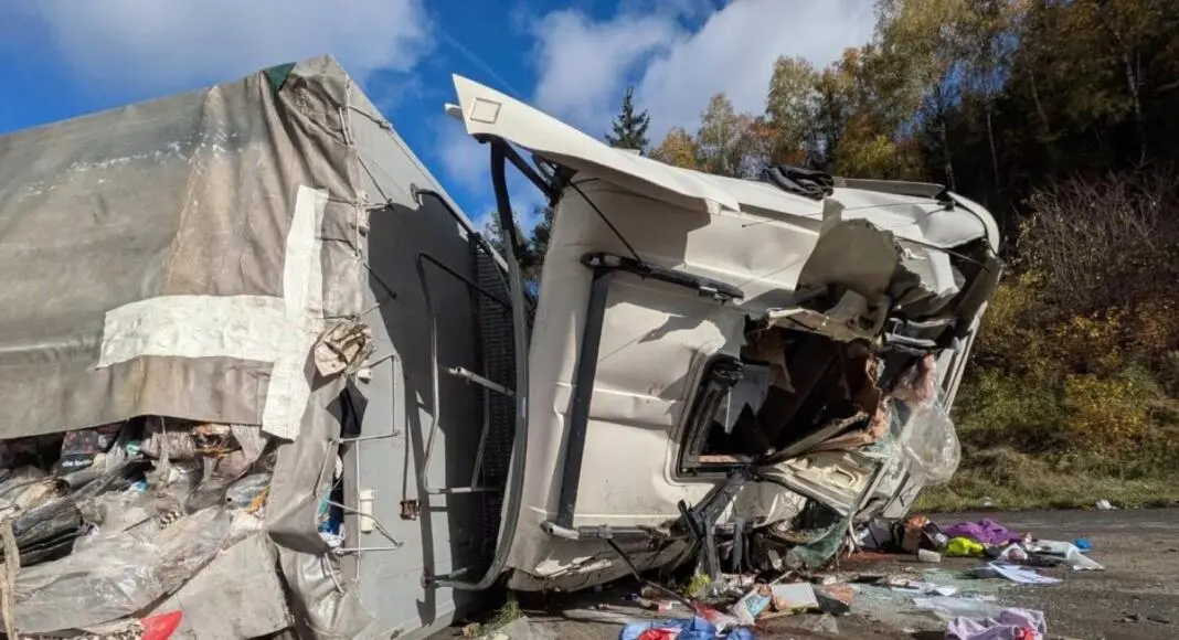 Große Mengen Kraftstoff ausgelaufen – Abfall auf der Fahrbahn verteilt