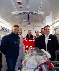 „Der Baby-NAW und unser Level 1-Perinatalzentrum gehören einfach zusammen. Ohne dieses hochspezialisierte Fahrzeug könnten unsere kleinsten und verletzlichsten Patientinnen und Patienten nicht in unsere Klinik kommen oder verlegt werden. Die ‚fahrende Intensivstation‘ sichert ihnen in vielen Fällen das Leben. Mit dem neuen, top ausgestatteten Fahrzeug können wir noch mehr Sicherheit anbieten“, freut sich Sven Axt, Geschäftsführer der Helios HSK.