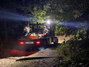Da der Weg von der Talstation aus zu schmal war, um befahren zu werden, wurde das geländegängige Spezialfahrzeug auf den Neroberg verlegt. Von dort aus konnte es über den schmalen Wanderweg bis zur Patientin vordringen. Die Frau wurde vorsichtig in einer sogenannten Schleifkorbtrage gelagert und auf der Ladefläche des Fahrzeugs sicher zur Bergstation transportiert.