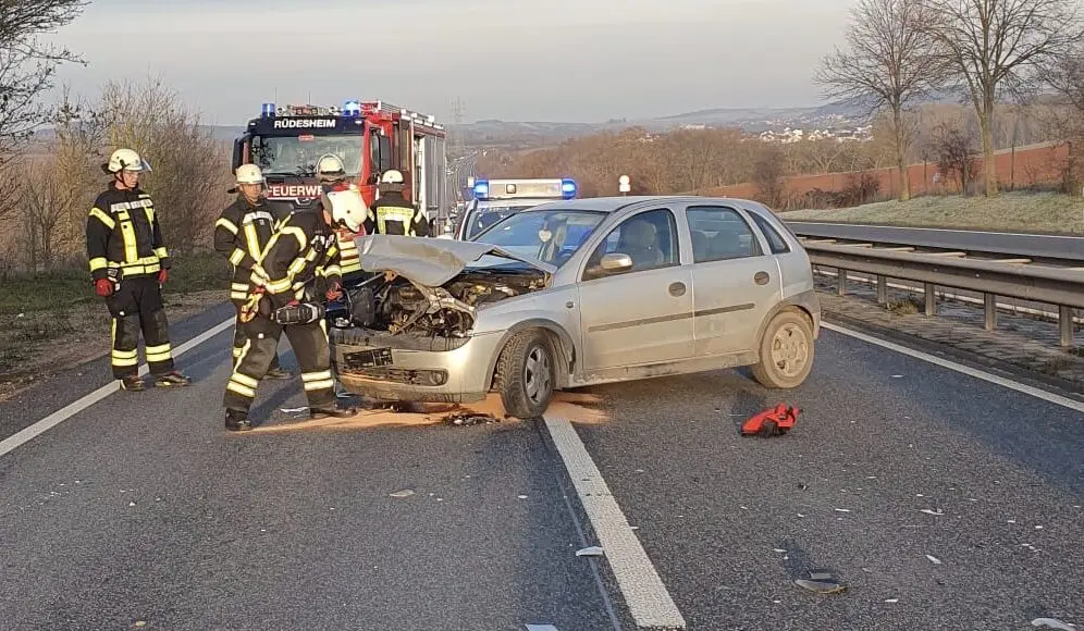 Beim Eintreffen der Einsatzkräfte der Unfallstelle hatten alle Personen die Fahrzeuge bereits verlassen. Der Rettungsdienst versorgte die Verletzten und kümmerte sich um den Transport in ein Krankenhaus. Nach dem abstreuen ausgelaufener Betriebsstoffe und dem Abklemmen einer Fahrzeugbatterie war der Einsatz der Feuerwehr nach 45 Minuten beendet. Während der Rettungs- und Bergungsarbeiten bildete sich ein Rückstau bis zur Anschlussstelle Rüdesheim/Roxheim.